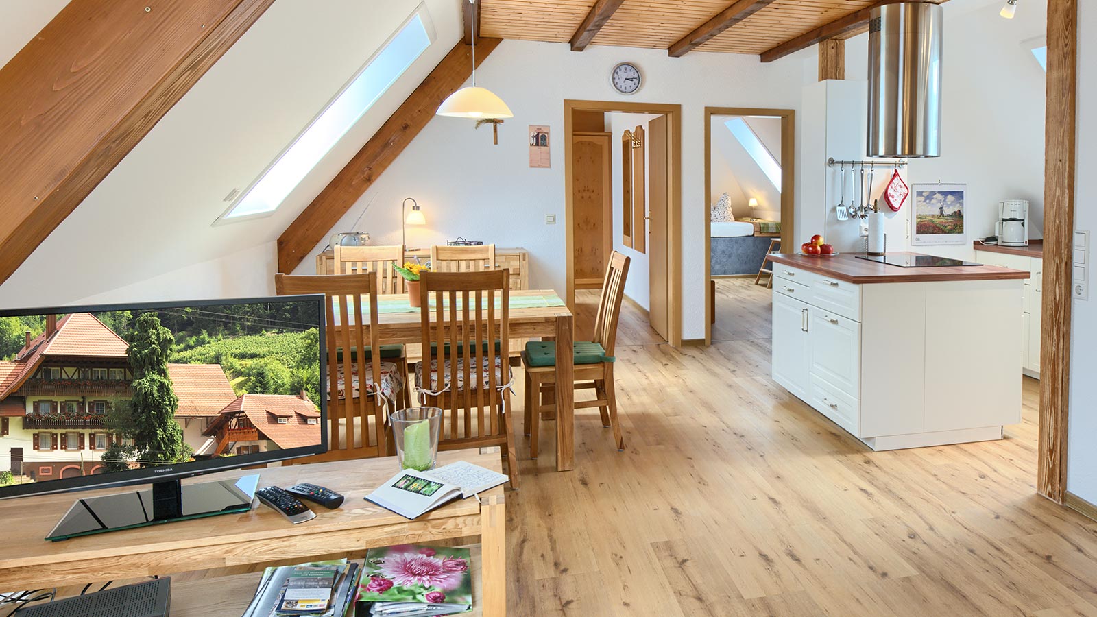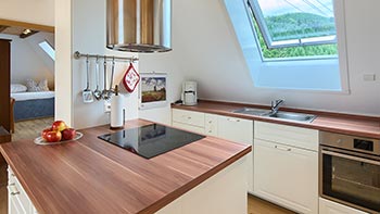 - Voll ausgestattete Küche mit Essecke (inkl. Geschirrspülmaschine)