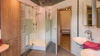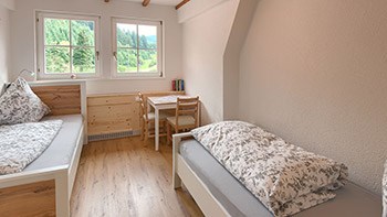 - 2 Schlafzimmer, eines davon mit Doppelbett, eines mit zwei Einzelbetten
